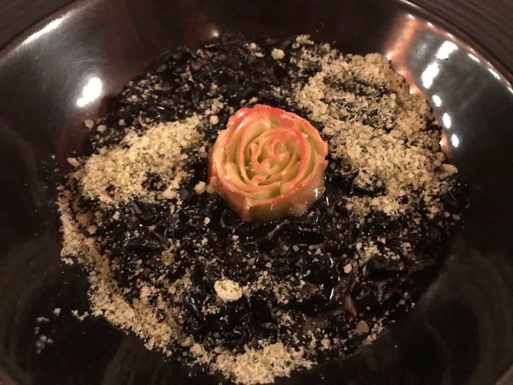 Nos encantaron los amuse bouche, las galletas tricolor, los snacks  y la manteca especialmente grabada con la imagen del Akelarre, aquel macho cabrío que preside las reuniones de brujas.   Mención aparte para unas galletas que parecían de chocolate talladas a mano.    El trampantojo en cuestión era una suerte de “canapé de morcilla” con la imagen de un chancho.  Muy buena idea y MUY RICA.  La vajilla es preciosa, sobria,  no hay grandes sorpresas en el menú pues el fuerte de  Pedro Subijana es el producto, las técnicas y los sabores.  No vas a ver volando globos con el postre, ni humo saliendo del plato,  ni piedras comestibles,  ni azúcar con formas, ni nada que te distraiga del menú.    No lo necesita,  tiene una trayectoria tan vasta y tan genial, que no precisa de ningún otro recurso.