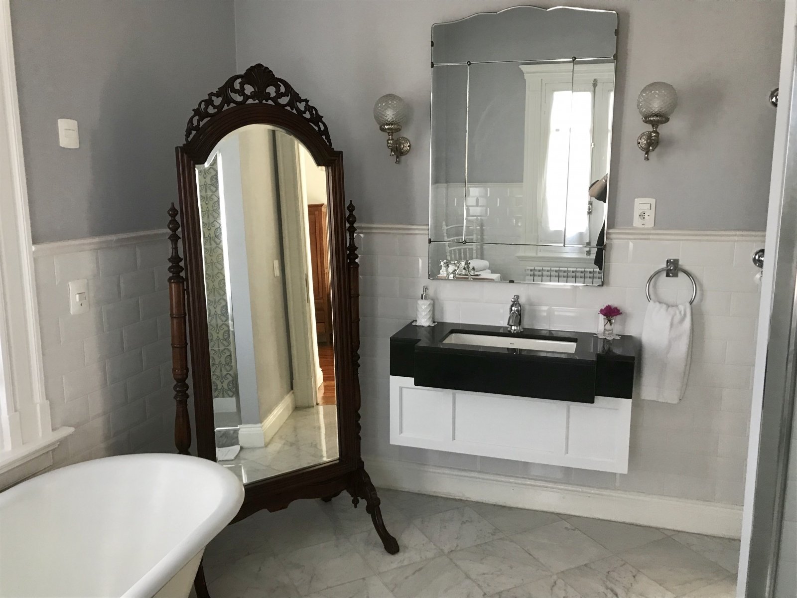 La casona, bellísima, restaurada maravillosamente en una perfecta zona de Carrasco. Todo en ella invita a recorrerla: los pisos, los vitraux, las piezas de arte y los magníficos muebles. Tiene 6 habitaciones cuyo precio varía entre los U$S 90.- a U$S 120.- por día. Tres en la Planta Alta y tres en el jardín. Las habitaciones son exquisitas. Realmente me sorprendieron muchísimo (aunque las fotos no les hacen justicia).