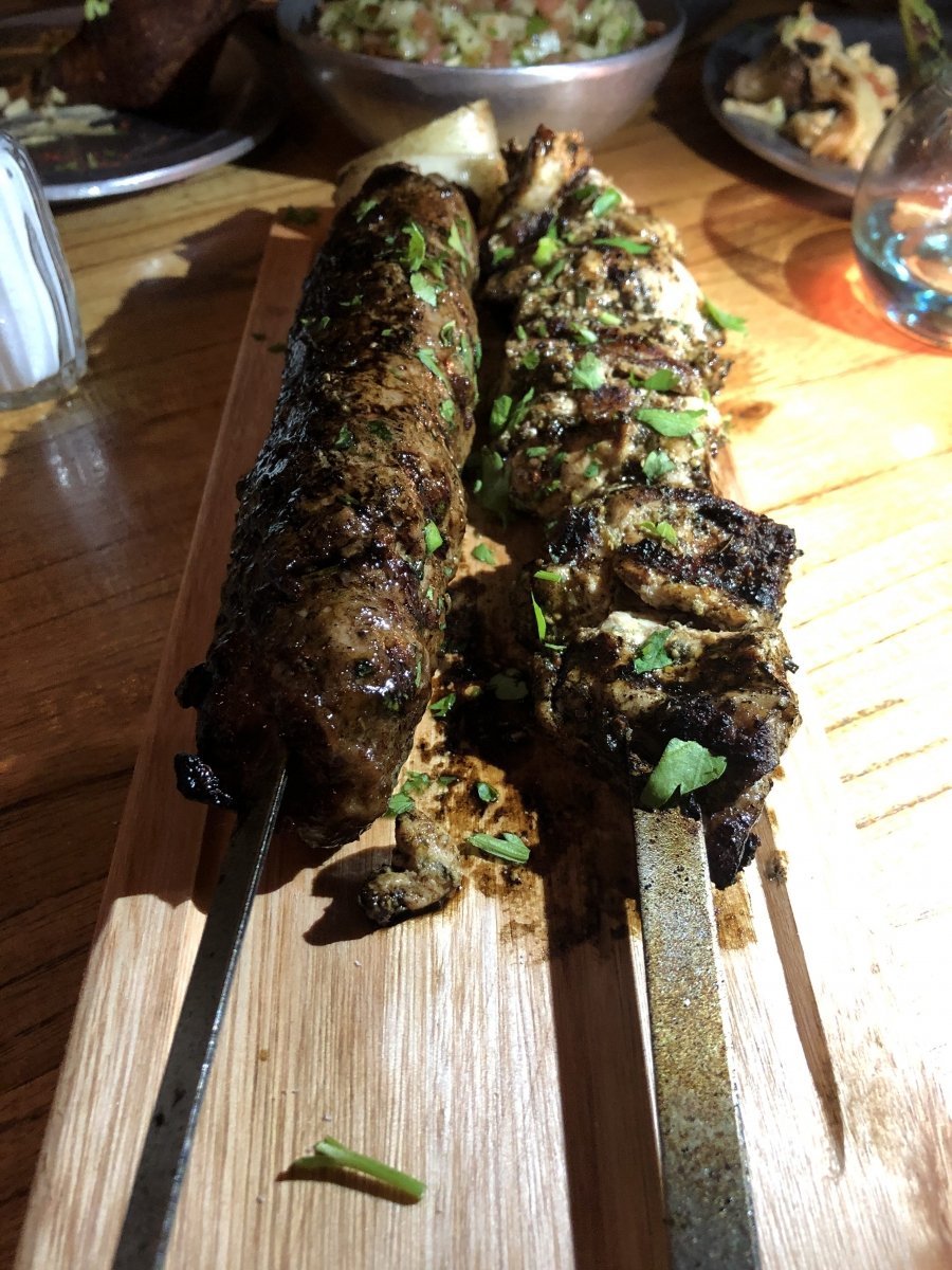 El hummus particularmente me encantó. Su textura estaba perfecta, se notaba una buena pasta de sésamo detrás y estaba bien condimentado. Equilibrado y muy rico. También tienen un muy buen shawarma y brochettes (de pollo, ternera y cordero condimentadas al estilo griego), muy bien sazonados. El tabule estaba muy bien resuelto con un gusto a menta que le daba un toque fresco y muy acertado. Tal vez le faltaba un poco de sal, pero nada que no se solucione. El keppe frito estaba muy bueno, muy sabroso y el falafel estaba bien, era sabroso, así como el fattoush (no me mataron, pero estaban bien).