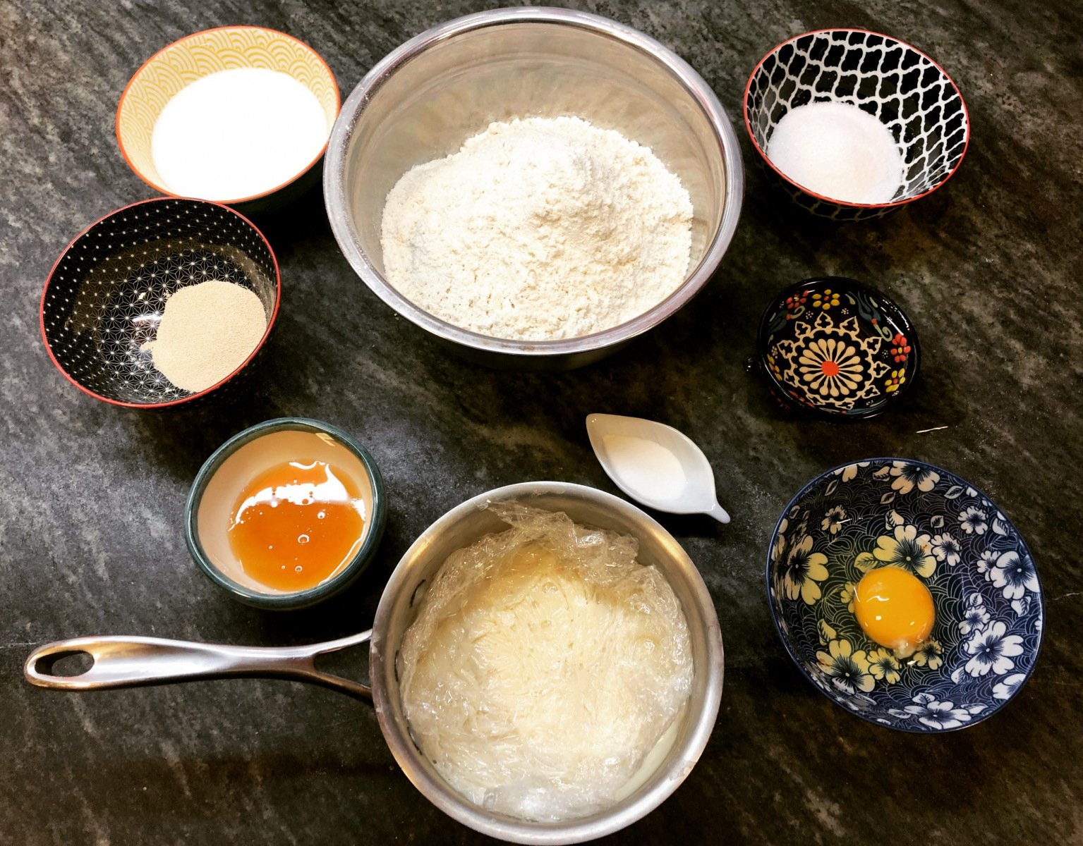 Según leí,  parece que después de la Segunda Guerra Mundial los japoneses se “vieron obligados” a comprar trigo estadounidense y a desarrollar una cultura panadera que no era propia del país. E inventaron una técnica denominada tangzhong para hacer panes muy tiernos y con una muy buena conservación, solamente a base de preparar un engrudo con parte del líquido y de la harina de la receta. Más fácil imposible. Ellos son así, no?