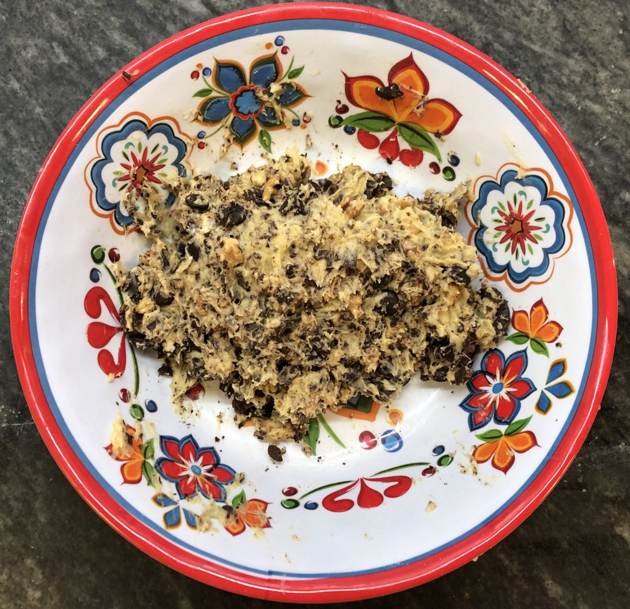 Luego incorporar los secos de la receta tamizados. Integrar con la espátula. Tipo un crumble debe quedar.
