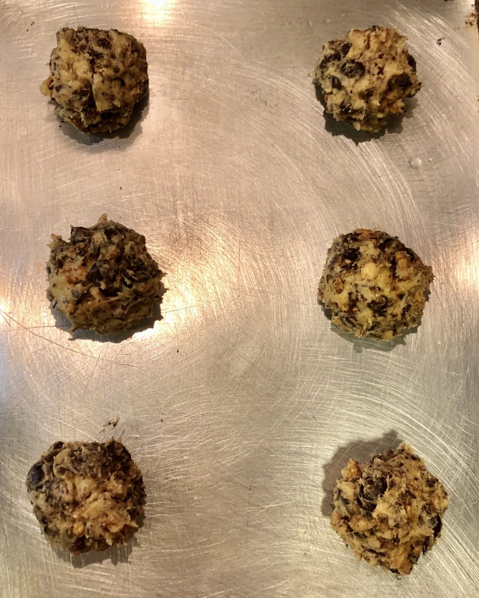 La masa nos va a alcanzar para hacer 6 bolas de aprox 70 g cada una (yo las peso). Una vez que las tenemos, las colocamos en una placa un poco enmantecada. Cocinamos 12 min a 200 grados.
