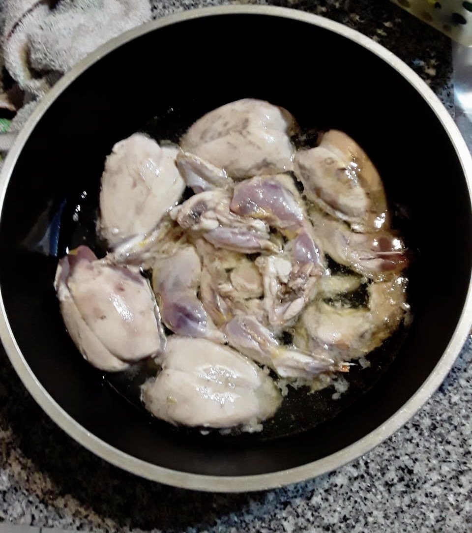 Primero, por supuesto, hay que tener las perdices limpias. Luego las sellamos en una olla lo suficientemente grande para que no se amontonen.
