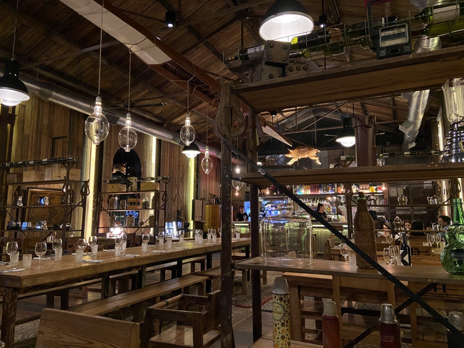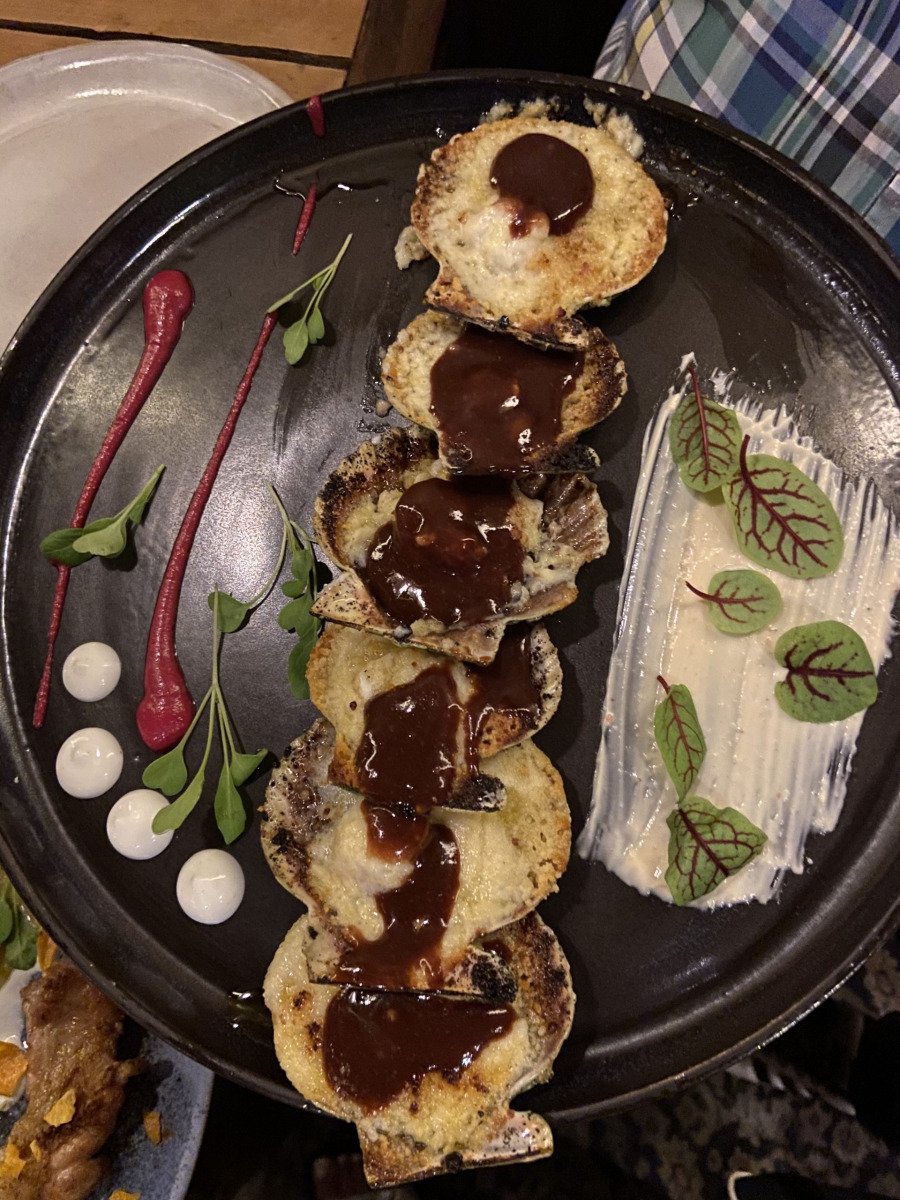 El lugar es hermoso, tienen bruta inversión. La decoración, llena de objetos viejos y antiguos, la ubicación de la cava, el deck, todo en su conjunto hace una delicia la estadía. Un cerdo colgado sobre la barra hace honor al nombre y trae una remembranza de Tegui. Hubiéramos supuesto (sino hubiéramos leído una reseña) que el menú estaría dedicado al chochan. Pero no, el menú, dentro de lo corto, es variado. Se divide en Flora y Fauna. Flora no nos tentó y fuimos por Fauna. Éramos 3. Pedimos la variedad de quesos, una provoleta de vaca con chutney de tomates (que no necesariamente viene con todo lo que dice en la carta, pero similar), vieiras gratinadas, bondiola braseada y carrillera. De postre un cheesecake. Los platos estuvieron todos muy bien. Todos sabrosos y bien preparados. La crítica para hacer es que repiten preparaciones (llámese salsa, chutney, pickle a modo de ejemplo) en los distintos platos. Siendo que la carta es corta, estaría bueno que los platos fueran bien diferenciados. Otro punto a criticar es que algunos platos estaban cachados. Siendo un lugar tan bien puesto y con tanta inversión, para mí es inadmisible. Máxime que en el salón no había más de 5 mesas ocupadas.