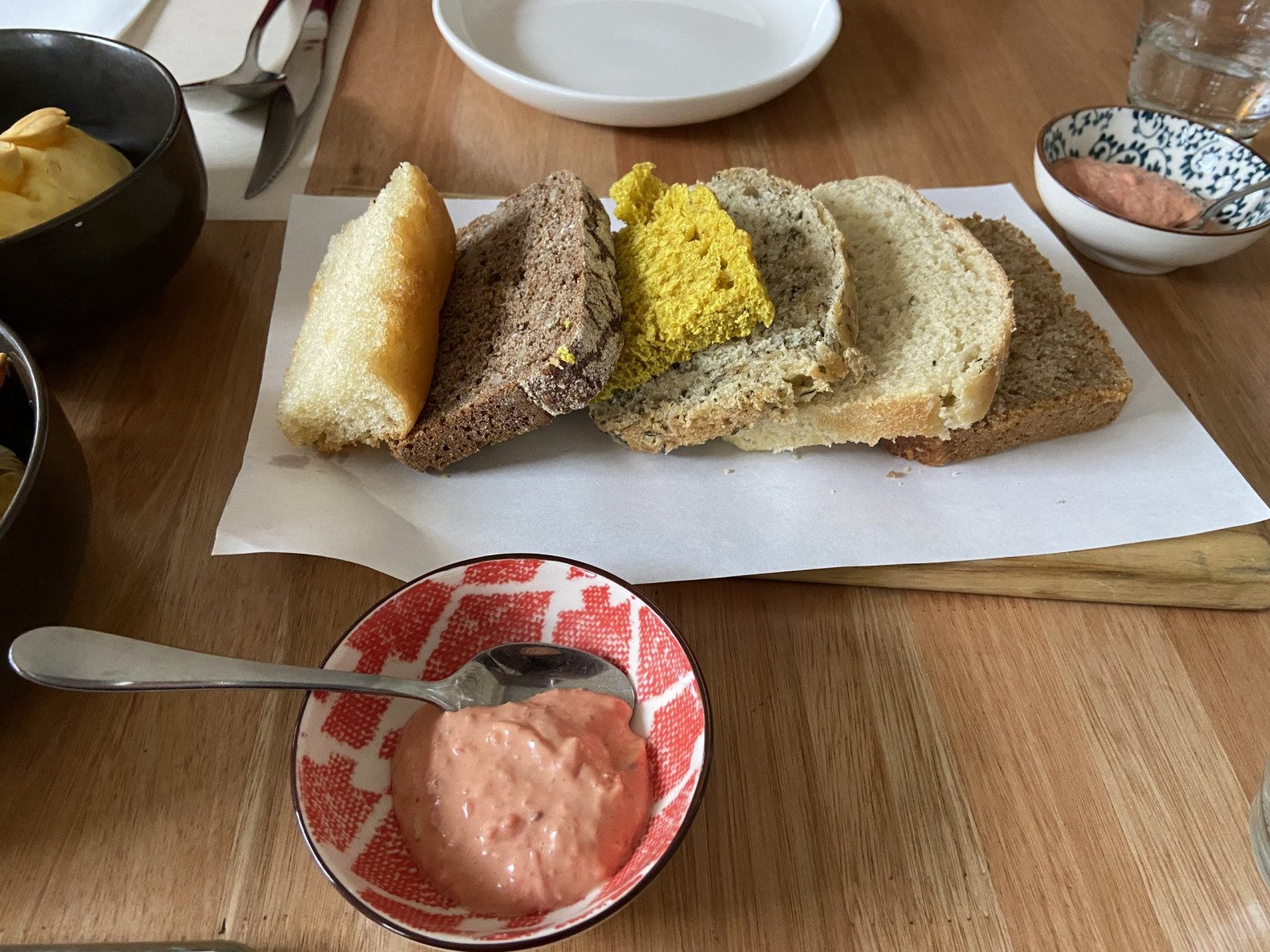 Siempre tienen una panera EXCELENTE. Variedad de panes a cuál más exquisito, acompañados por un dip original.