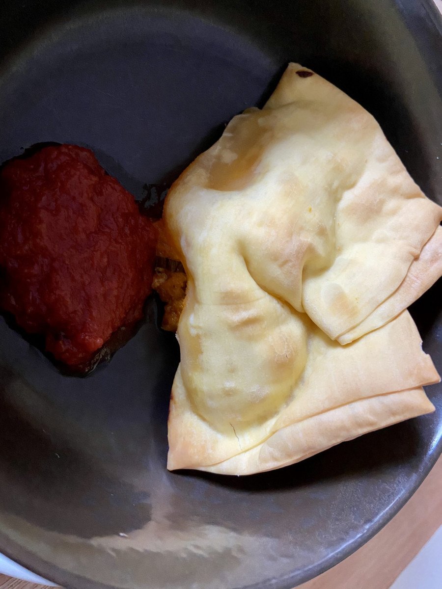SIEMPRE tienen algo para convidarte. Hoy por ejemplo fue una empanada de calabaza y queso de cabra con una salsa de 🍅 especiada INCREIBLE.