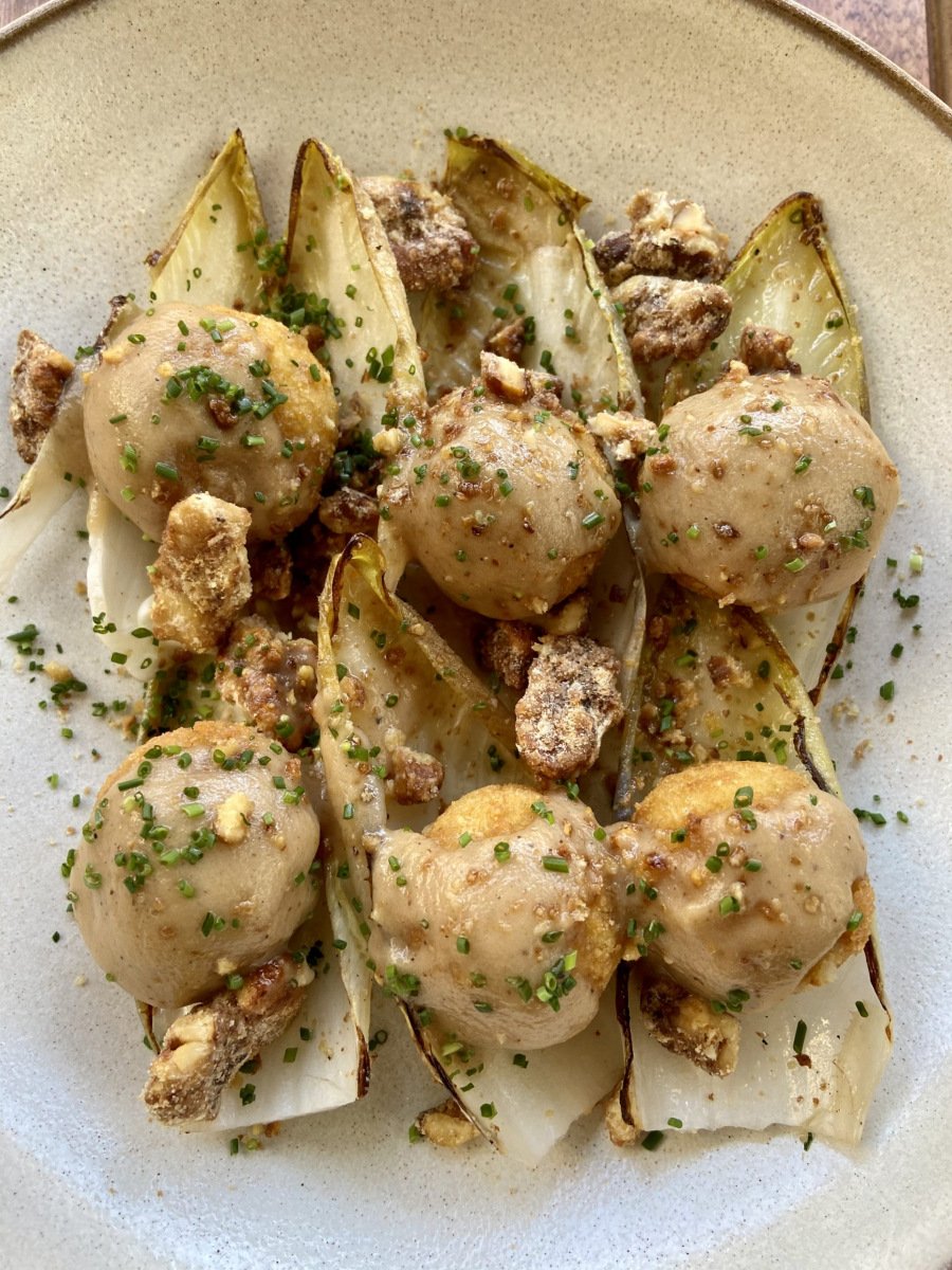 Luego unas croquetas de queso azul con unas endivias a la parrilla y una nueces caramelizadas. Una conjunción de sabores irresistibles.