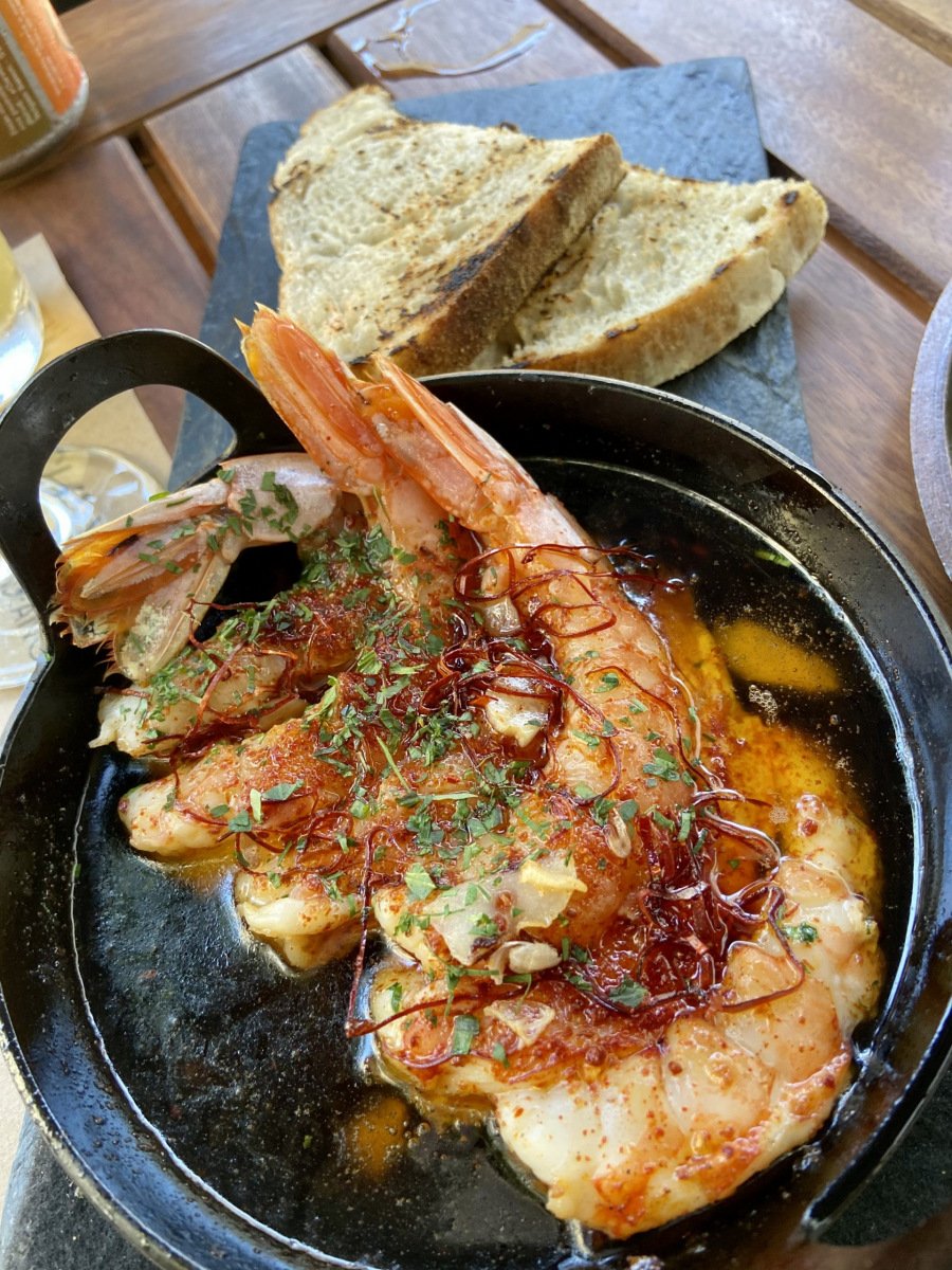 Después llegaron los tacos al pastor de cerdo 🐖 con todo lo que un buen taco tiene que tener. Al tiempo el PIL PIL de langostinos. Pil pil vago, a lo andaluz, plato que Fer hacía en la playa cuando trabajaba en España.
