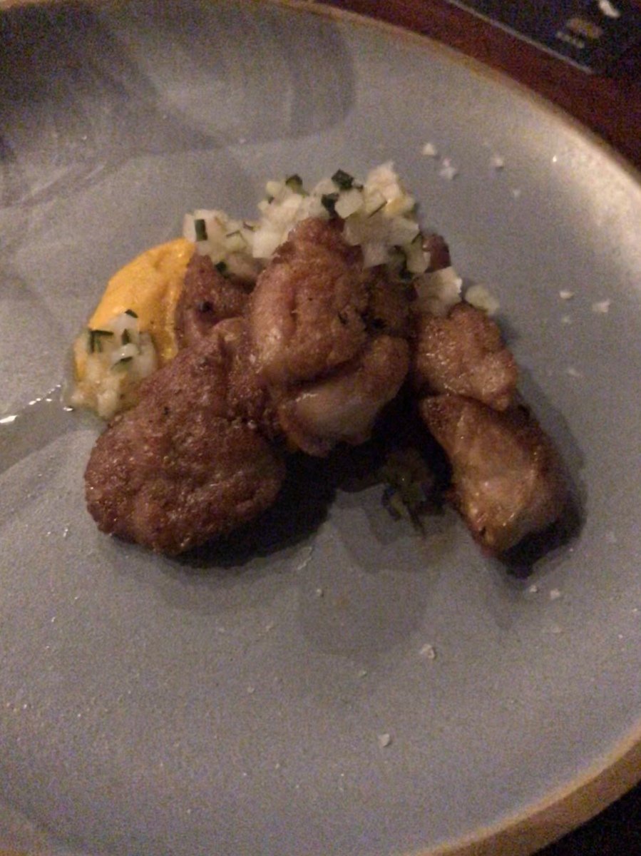 Carta corta, muy interesante y riquísima responsabilidad del maravilloso Julian Gastón del Pino Las porciones son chicas, ellos te lo aclaran en todo momento. Pero todo lo que probamos fue riquísimo. Los panes que te traen al principio son deliciosos. Comimos trucha marinada, zucchinis asados, vinagreta de miel y nuez. Langostinos, crema ácida de almendras, apio crocante. Mollejas, emulsión de zanahorias, vinagreta de peras y pepinos. Pulpo, papas y alioli de pimentón. Cordero braseado y gnocchis de queso manchego (quiero morir dentro de un plato de esos gnocchis). Linguini de semolín con ragout de rabo. Y TODOS los postres. Riquísimos! Mención especial para el postre de bizcocho de mandarina, y para el de cremoso de banana y para el de las peras al vino. Ah, no, pará. Je, son todos… todos al podio al final.